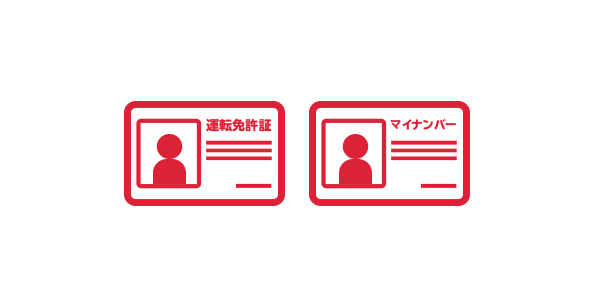 - 法人名義や代理人によるお申込みの場合は、来店される方個人の確認書類などが必要になる場合があります。来店者の確認書類としては、運転免許証以外の場合でも1点での受付が可能です。