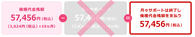 解約のお申込み時に、分割支払金残額/分割払金残額がある場合は引き続きお支払いいただきます。解約されますと、月々サポートが終了し、割引前の料金でお支払いいただくことになります。