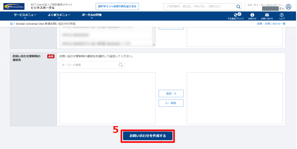 (5)フォームに必要事項を記入し、「お問い合わせを作成する」をクリックし、チケットを作成してください。