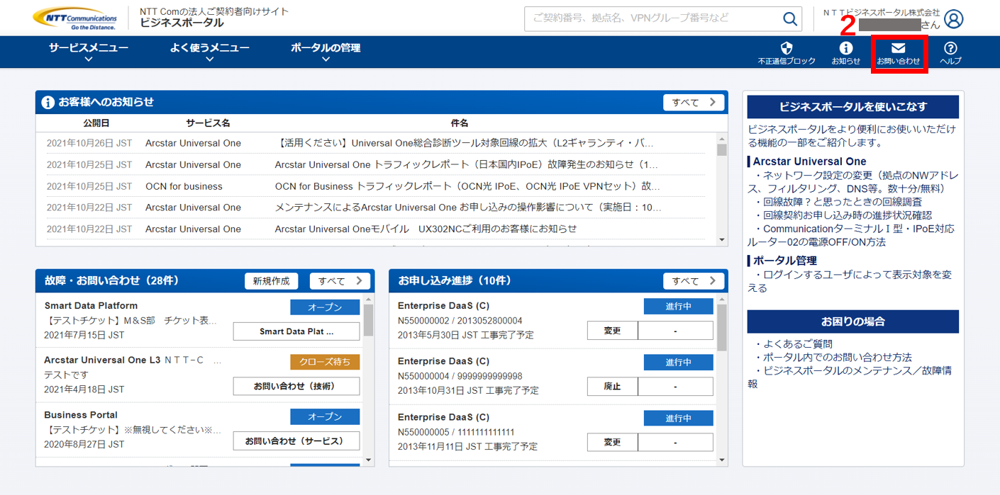 ビジネスポータルからのお問い合わせ方法について