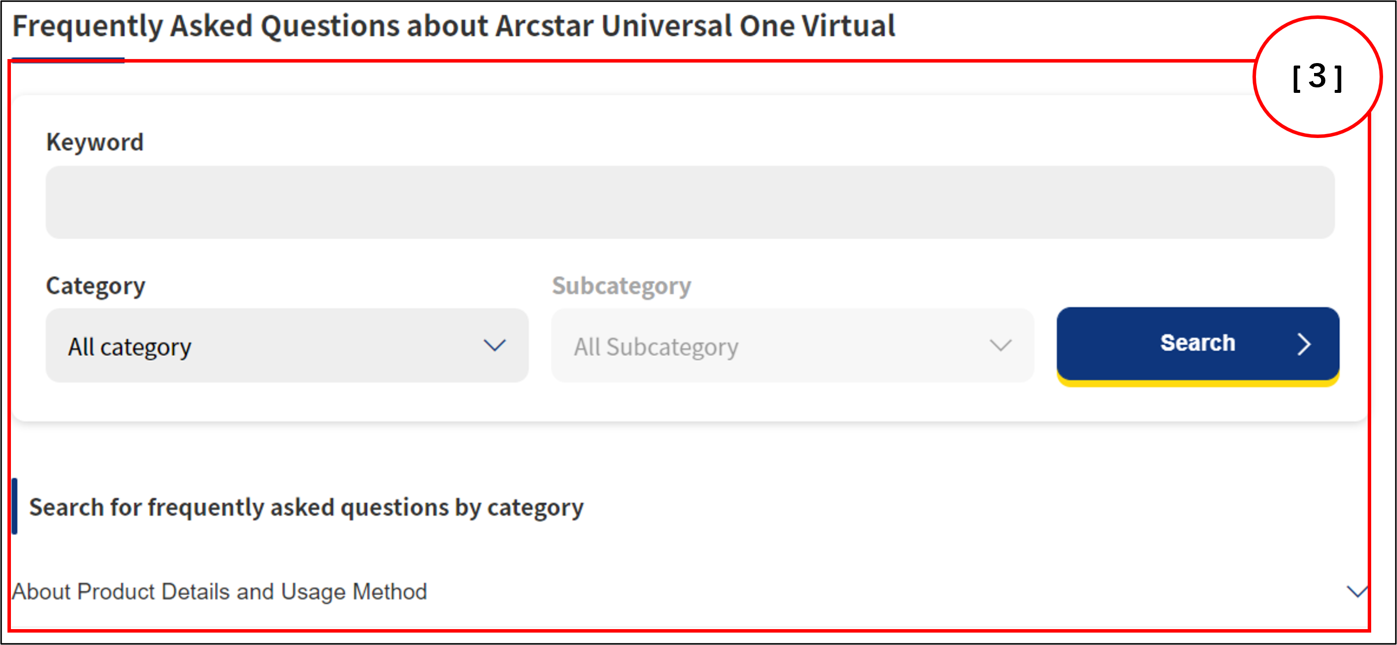 A list of frequently asked questions for the target category is displayed.