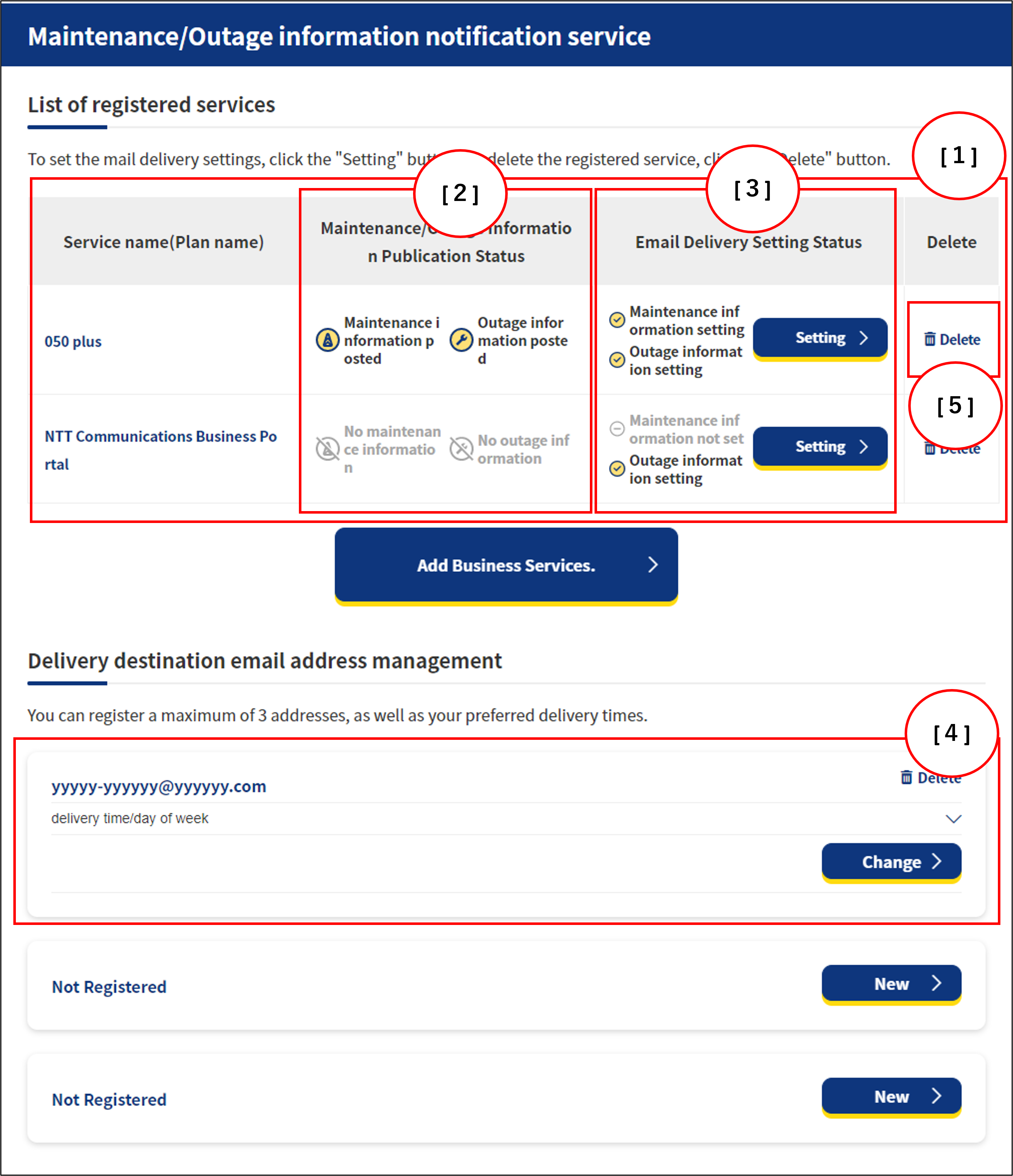 By registering a service in My Support, you can quickly access the support page of each service from this page, and you can check the posting status of maintenance / failure information. You can also set the delivery of maintenance / failure information mail from this page.