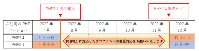 PHP7.4の提供終了日:2022年12月以降順次提供終了予定