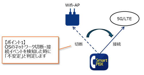 Arcstar Smart PBXでは、通話中のネットワーク状態をリアルタイムで確認しており、通話品質に影響を与えた可能性がある場合、「ネットワーク接続状態が不安定でした」と表示されます。判定には以下の3つの仕組みを用いています。